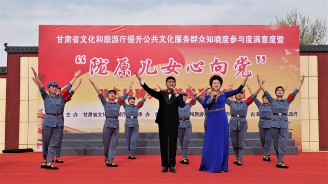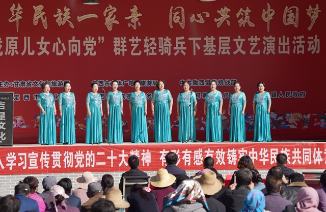 在武威市,群艺轻骑兵(武威市文化馆)为凉州区高坝镇马儿村天马社区、永昌镇和古浪县大靖镇长城村、干城乡的居民送去了绚丽多彩的歌舞乐盛宴,通过《凉州词》《王哥放羊》《花开盛世》《越走路越宽》《我们的快乐时光》《不朽》《洪湖赤卫队选段》等精彩节目,生动展现了中华优秀传统文化、革命文化、社会主义先进文化的独特魅力,受到了当地群众的热烈欢迎。