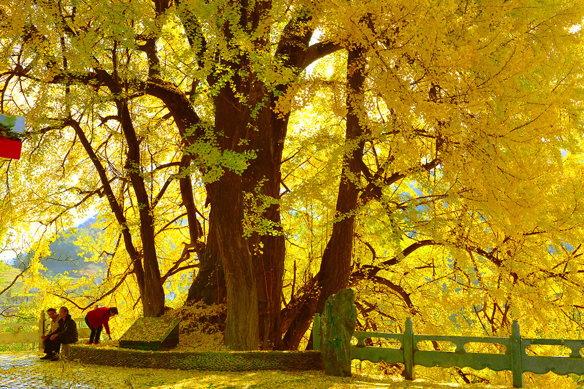 此刻,是银杏最佳的观赏期,在美丽乡村阳坝,有着千年历史的银杏树,落在地上的大片金黄的银杏叶,像金黄的地毯,美不胜收。沿燕子河而下,两岸遍山红叶美如画,岸边一大片银杏叶在阳光的照耀下金光闪闪。