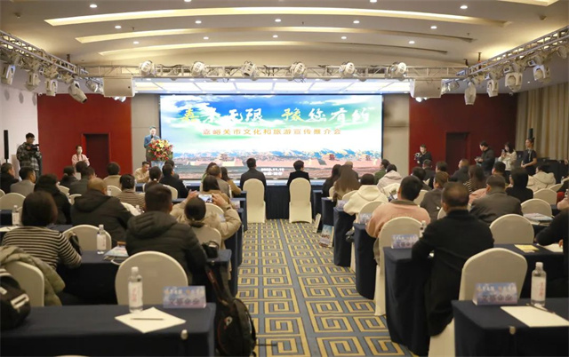 “嘉峪关,一个看雪山能把岁月融化的地方,一个登长城能寻找精神家园的地方,他的铁马冰河、古风神韵;他的侠骨柔情,戈壁苍茫!他就像一颗璀璨的明珠镶嵌在中国西部茫茫戈壁上,是一片令人神往的旅游胜地和投资热土……”嘉峪关市文旅局负责人用饱满的热情、富有感染力的语言对嘉峪关文旅资源进行了推介。