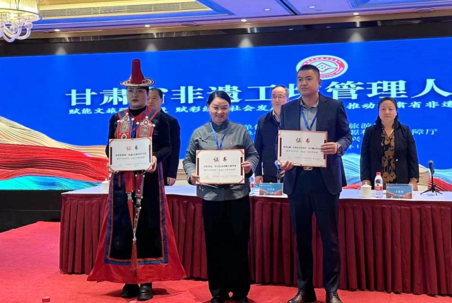 11月15日上午,由省文旅厅主办,省人力资源和社会保障厅、省乡村振兴局支持的甘肃省非遗工坊管理人员培训班在兰州市开班。省文旅厅党组成员、副厅长吕兴来出席开班仪式并作了题为“赋能文旅强省建设,赋彩经济社会发展,努力推动甘肃省非遗助力乡村振兴再上新台阶”的动员讲话,省文旅厅非物质文化遗产处负责人主持开班仪式。