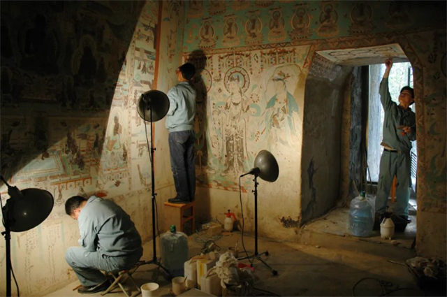 2006年4月,敦煌研究院成立数字中心(后更名为文物数字化研究所),主要承担敦煌石窟及相关文物的数字化技术研究与应用工作,并经过持续不断的试验、探索和研究,攻克了如何在复杂洞窟环境中精确地布光、如何针对不同曲率变化的壁画获取高质量的图像、如何控制图像拼接产生的形变等系列技术难题,并最终形成了一整套集合数字图像采集、色彩管理、图像拼接、图像定位纠正和数据存储等的壁画数字化关键技术和工作规范。