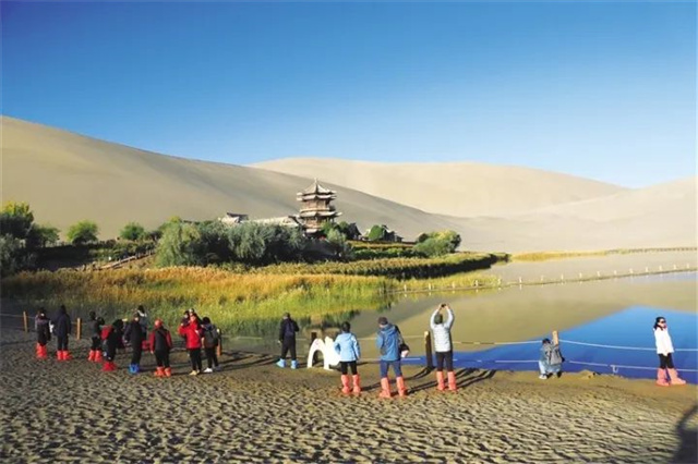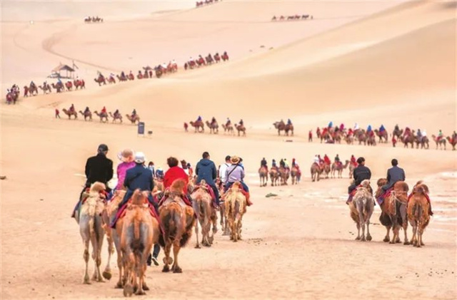 近年来,鸣沙山·月牙泉景区不断创新业态、打造亮点爆点,从敦煌文旅logo队列到百人托举五星红旗、点亮鸣沙山万人合唱的震撼场面,每个情景都是营销策划不断积淀,最终呈现的结果,是景区从管理层到运营层再到配套设施及旅游服务的复合效应。
