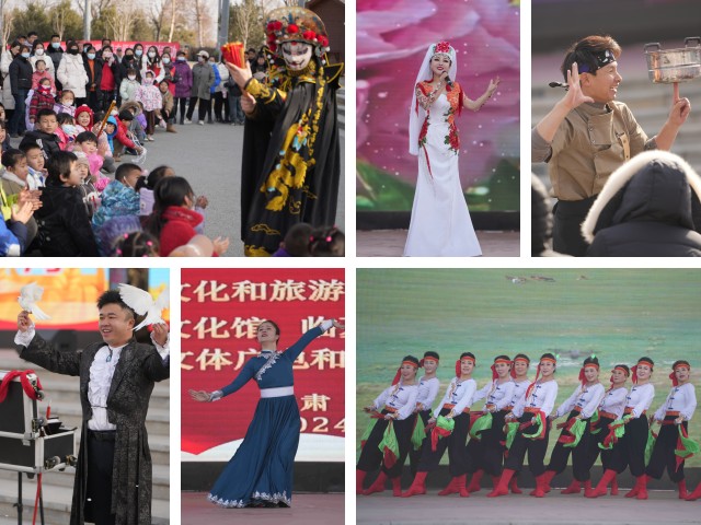 2024年1月20日—21日,甘肃省文化馆群艺轻骑兵继续奔赴临夏州永靖县彩陶广场和城北新村,开展在“家门口”的群众文化活动。