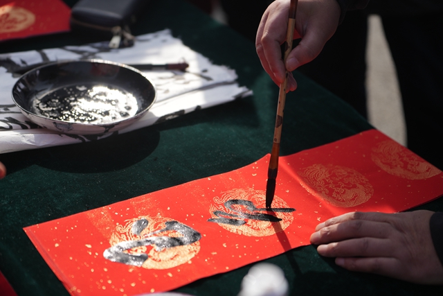 活动现场,书画家们挥毫泼墨,书写春联和“福”字200余幅,分发给现场驻足的群众。一副副寓意平安和谐、吉祥如意的春联,带着美好祝愿,为即将到来的新春佳节增添了喜庆氛围。