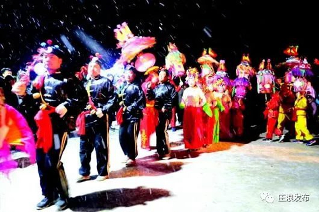 春节,耍社火、演地摊是庄浪人亘古不变的习俗。节日里,庄浪农村张灯结彩,锣鼓喧天,村头的社火表演更是一摊接着一摊,成为夜晚的一道亮丽风景。
