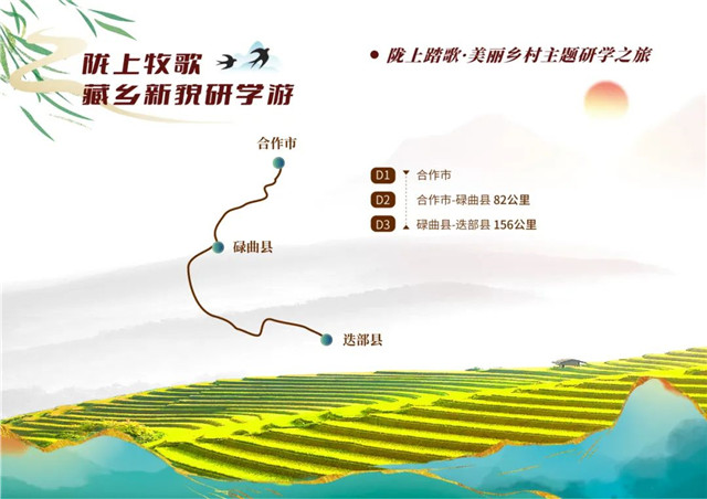 甘南藏族自治州合作市【合作市美仁大草原、合作市俄合拉村】—甘南碌曲县【尕秀藏寨文化生态旅游区、碌曲歌舞团】—甘南迭部县【扎尕那景区、茨日那村】