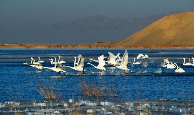 四月的武威,暖意融融,春水涟涟。湖水经过了一个冬天的沉淀和净化,碧绿如玉带镶嵌在大地之间,叫人忍不住心生欢喜。