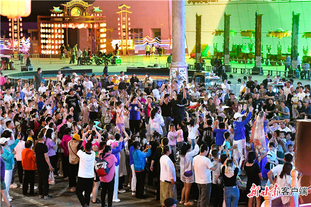 游客在上元市集随着音乐起舞。新甘肃·甘肃日报记者 马伊星 摄
