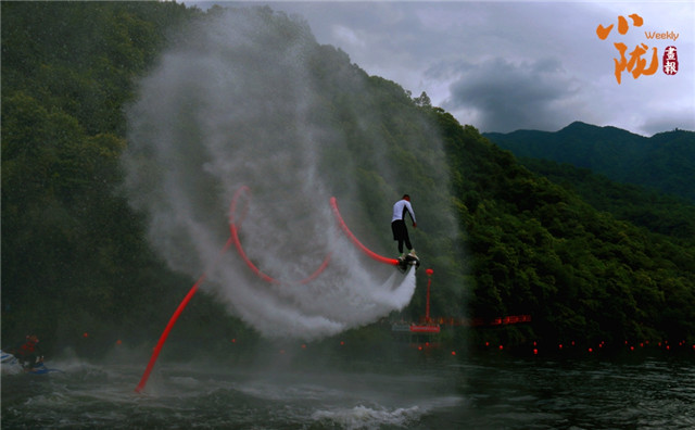 水上飞人特技表演,在给游客带来一场视觉盛宴的同时,乐享清凉夏日。