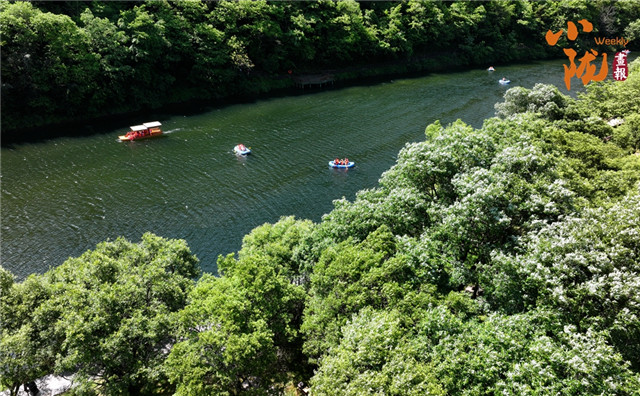 这里水如翠带,奇峰绵延,人游至此,顿入清幽秀美佳境。