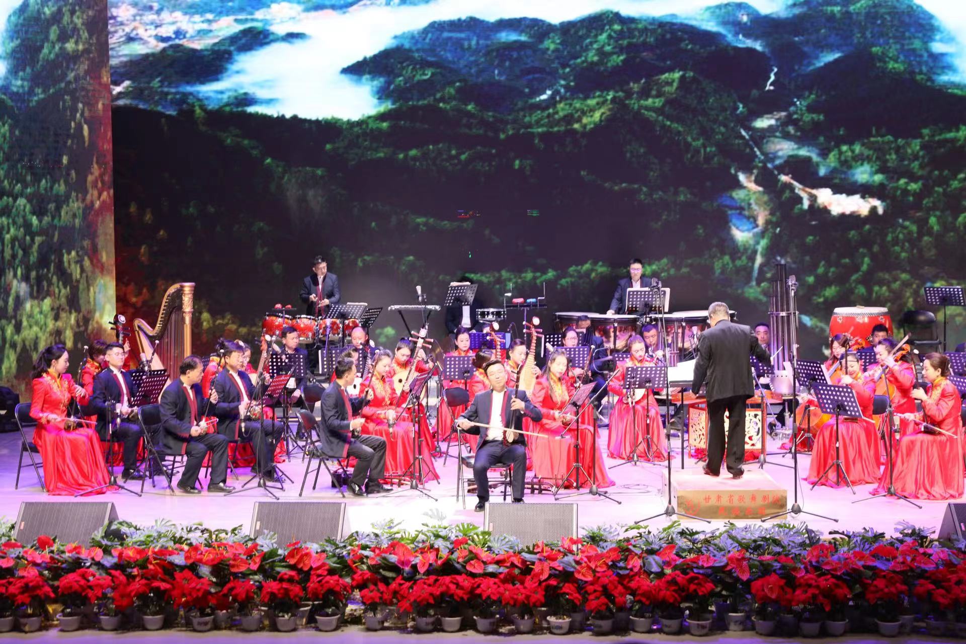 演出在民族管弦乐《我的祖国》中拉开帷幕,在乐手的默契配合下,激昂的乐声点燃全场的气氛,表达了对祖国的热爱与未来发展的美好期许。