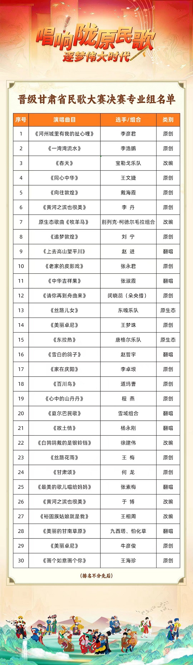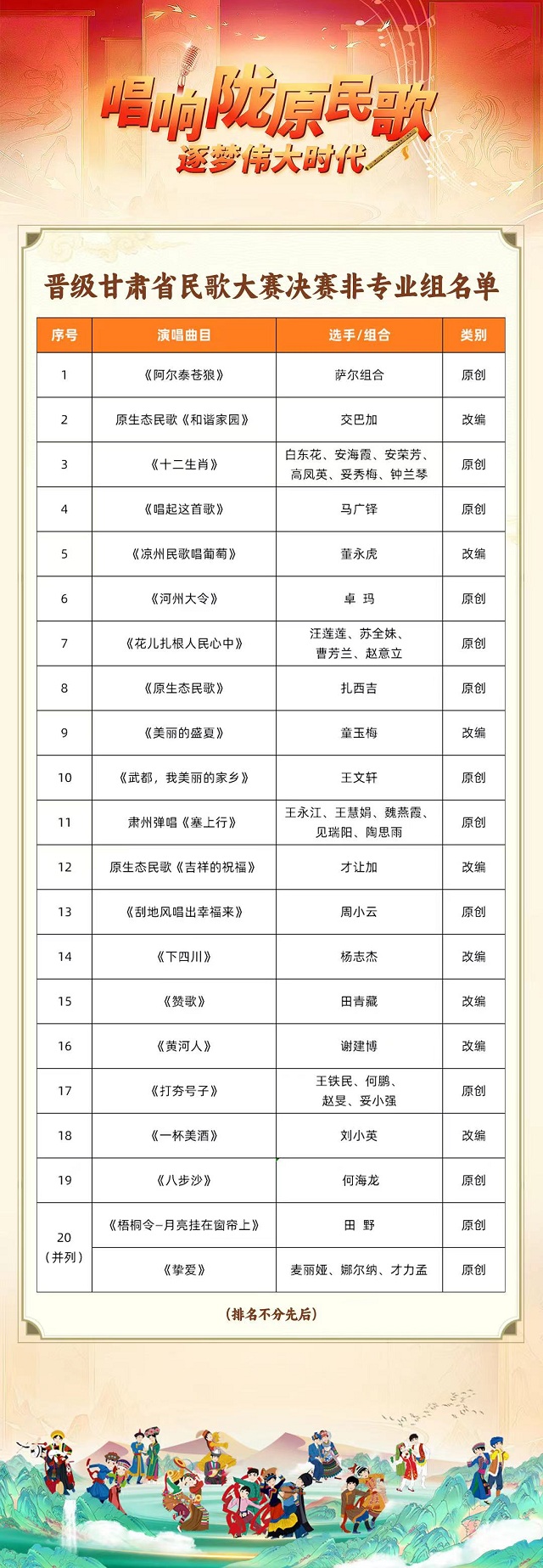晋级甘肃省民歌大赛民歌大赛决赛非专业组名单