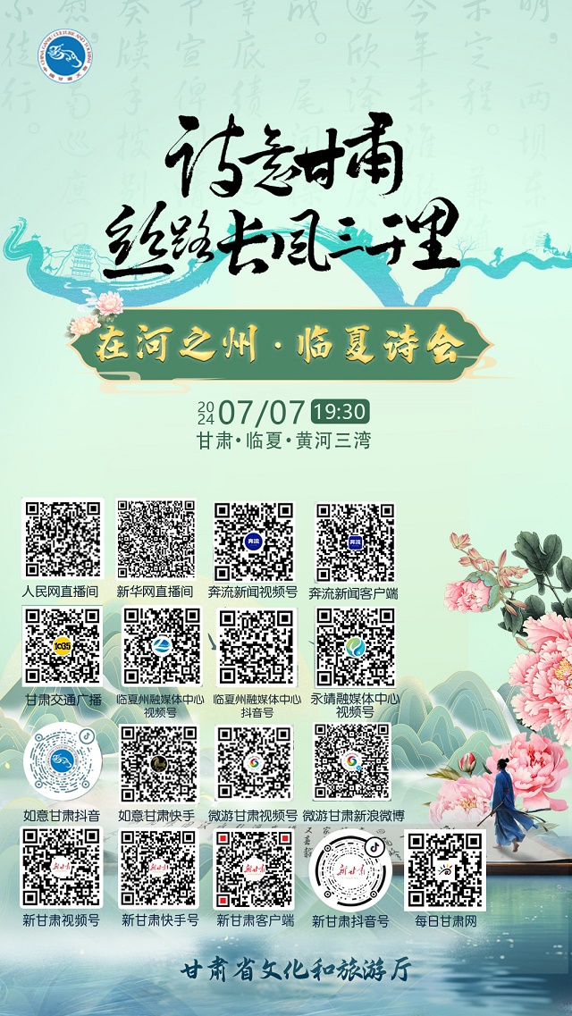 7月7日晚19:30,“在河之州·临夏诗会”将通过“新华网云直播”“人民网直播间”“新甘肃”视频号、“如意甘肃”抖音号、“微游甘肃”视频号、“奔流”客户端等21家视频直播平台进行同步直播。(文/甘肃省文化和旅游厅 宣学洲)