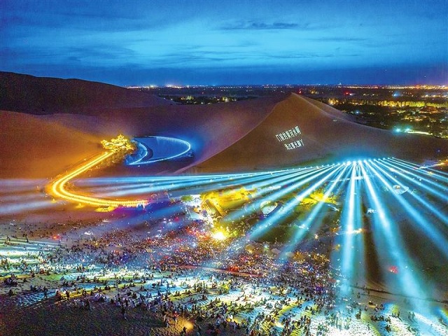敦煌鸣沙山·月牙泉万人星空演唱会现场。(于锋锋)