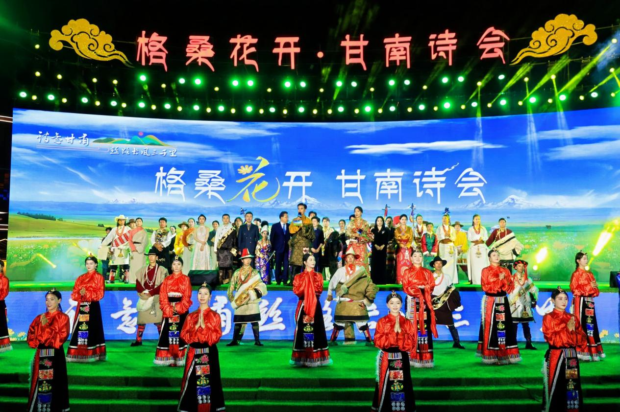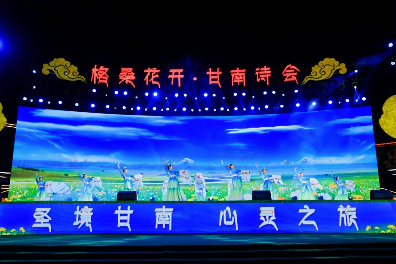 此次诗会在合作市中心香巴拉文化广场举行,以“格桑花开”为主题,通过“和谐甘南”“美丽甘南”“富裕甘南”“幸福甘南”“平安甘南”五个篇章,结合诗词朗诵、歌舞表演,从不同角度向观众展示了新时代甘南的全新面貌;在诗词与歌赋的交织中,让观众领略九色甘南的壮美山河和人文荟萃。