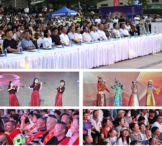 开幕式上,甘肃省歌剧院精心打造的综艺晚会——《奋进新征程·时代欢歌》精彩上演。舞台之上舞蹈《荷花颂》美轮美奂、如梦如幻,舞台之下人头攒动、热闹非凡。女声四重唱《为祖国干杯》豪情四溢的旋律拂过黄河水面,恰似在与奔腾的河水齐声合唱;敦煌舞《飞天》宛如仙境之影,恰似一幅绚烂多姿的美妙画卷。最后,演出在歌舞《我的甘肃》中徐徐落下帷幕,歌舞飞扬颂陇地,情怀炽热赞甘肃,令现场观众深深沉浸其中。黄河的波涛声是这场演出天然的背景音乐,奔腾不息的河水仿佛也在为这精彩的表演鼓掌。微风拂过,带来丝丝清凉,整个黄河边,沉浸在一片欢乐与祥和之中,成为人们心中永恒的美好回忆。