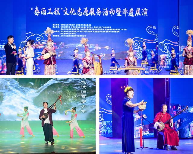 文化如水,浸润无声,连接着一个民族的过去、现在和未来。灿若星河的文化遗产,恰如“有源之水”,滋养中华民族绵延不绝。当天晚上还举办了“春雨工程”文化志愿服务活动暨非遗展演,来自全省各地的非遗传承人汇聚一堂,同台献艺,精彩演绎了秦安小曲《满江红 庆寿诞》、凉州贤孝《民族团结一家亲》、歌曲《牧羊马》、群舞《秀木尔》、舞蹈《卡拉卓乐哈》等非物质文化遗产,向观众展现了中华各民族文化各美其美、美美与共的万千气象,展示了中华文脉传承弦歌不辍、历久弥新的澎湃动力。展演中,出席嘉宾为阅读推广活动获奖个人或团体颁发了荣誉证书、发放了阅读卡。