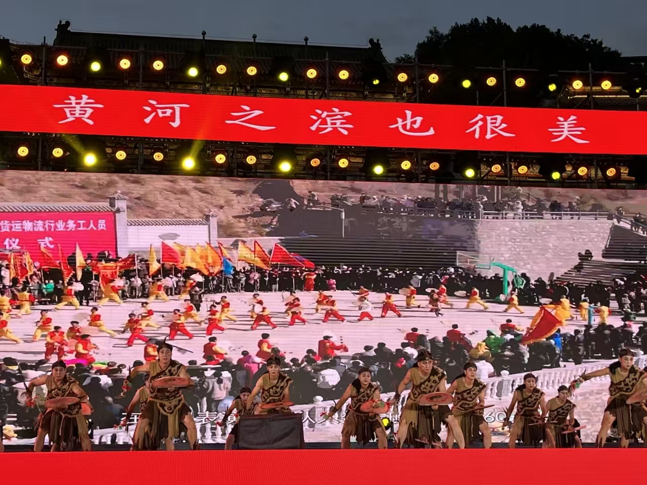 演出现场,人声鼎沸,热闹非凡。来自省内外沿黄城市及兰州本地的杰出民间艺术团队竞相献艺,将一场视觉与听觉的盛宴呈现于观众面前。《太原锣鼓》的雄浑、《武山旋鼓》的激昂、《兰州太平鼓》的震撼,声声鼓点如潮,激荡着每个人心中的太平盛世之梦。而《黄河情》与《黄河之滨也很美》等舞蹈作品,则以曼妙的身姿在河畔翩跹起舞,赢得观众连绵不绝的掌声与喝彩。西宁花儿的悠扬、蒙古长调的辽阔、秦腔折子戏的醇厚,轮番上阵,不仅展现了中华民族多元文化的璀璨光辉,也让现场观众仿佛穿越时空,领略了黄河流域深厚的文化底蕴和丰富多彩的地域风情。最终,整场开幕式演出在歌舞《奋进新时代》中圆满结束。