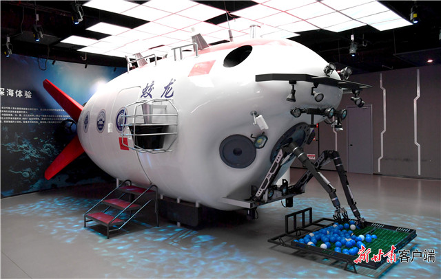 松鸣岩研学实践基地工业科创研学馆内1:1还原的“蛟龙”号模型