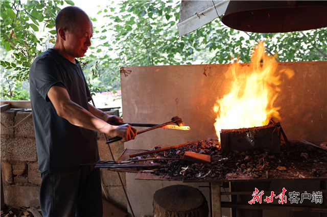 △保安腰刀州级传承人马乃比有煅烧刀坯。新甘肃·甘肃日报记者 田蹊 摄