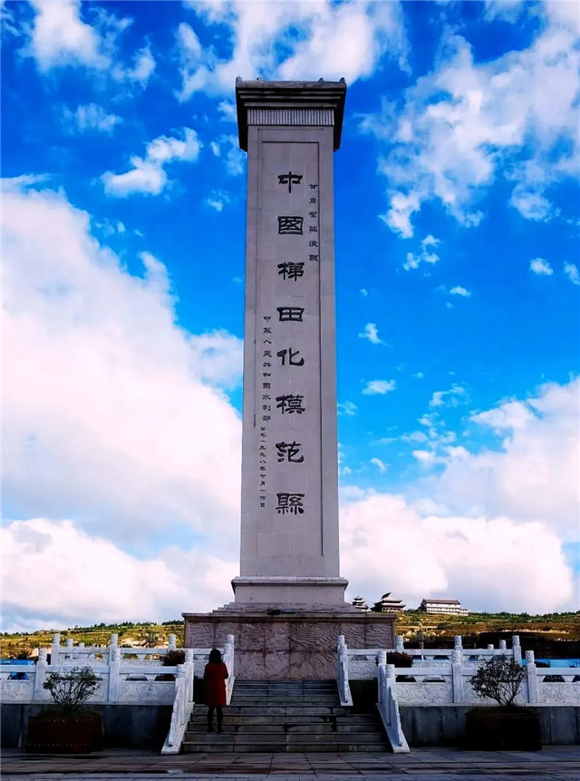“中国梯田化模范县”纪念碑建于1998年,位于庄浪县城梯田文化广场。