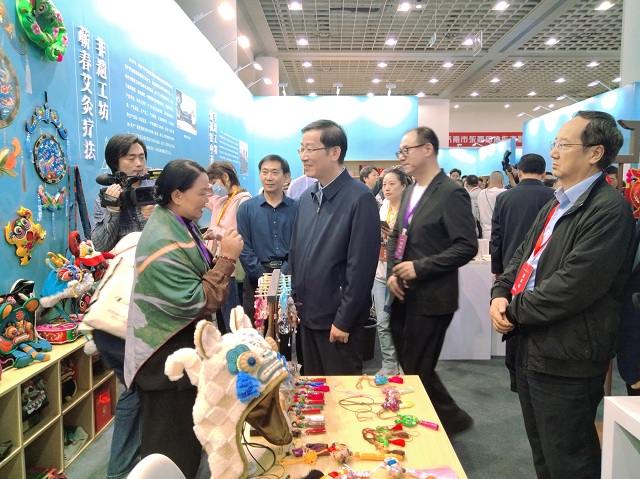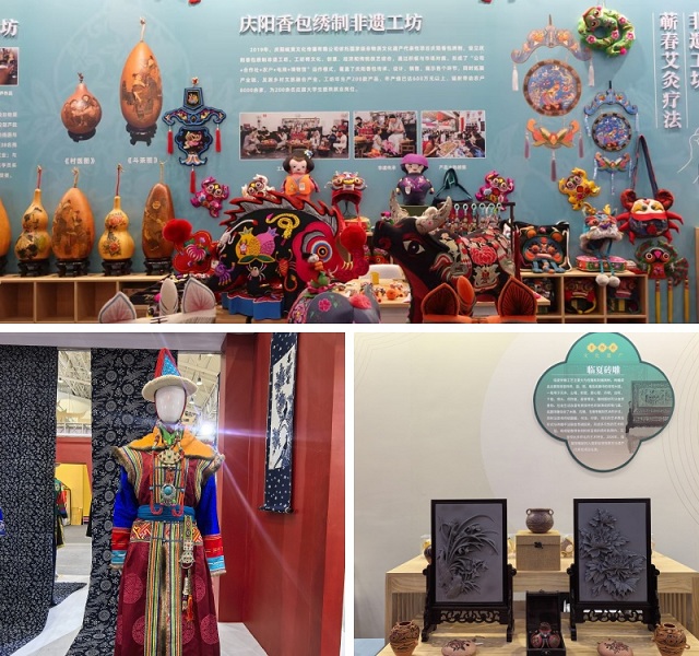 甘肃省肃北蒙古族服饰、临夏砖雕两项国家级非遗代表性项目在“美在匠心更创新”板块展示,庆阳香包绣制省级非遗工坊在“美在乡村好光景 ”板块展示展销。舜耕国际会展中心场馆内,陇原非遗精品吸引了不少当地群众和游客注目,各展位前观众如潮、人流如织,热闹非凡。参展非遗作品经过精雕细琢、传承创新,既精致华美又充满丰富文化内涵。通过在本届非博会这一大型活动现场进行展示展销,不仅完美展示了甘肃省非遗传承人的独具匠心,更生动呈现了甘肃省多样民族的文化风情,为齐鲁大地民众带来了不一样的文化体验,在全国会场书写了甘肃非遗保护之美。