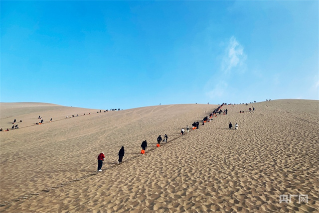 游客在敦煌鸣沙山游玩(央广网记者 李红军 摄)
