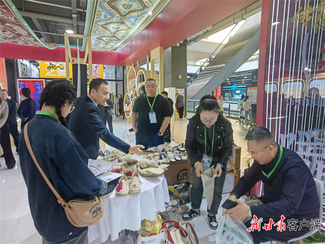 “麻烦帮我装两双麻鞋!”“好的,你先试着穿,觉着好的话,还可线上购买,款式选择更多。”在甘谷麻鞋展台前,负责人李雪忙得不可开交。