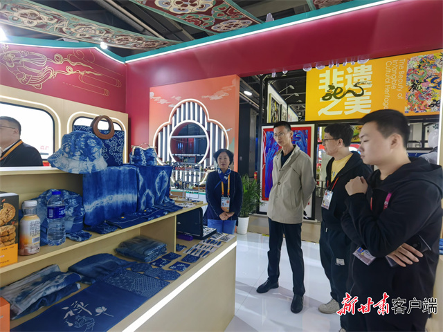 “每一次参加展会,我都会一遍一遍为观众讲解古法蓝染的历史和制作工艺,就为了让更多人能知道什么是古法蓝染,也让更多人真切感受甘肃非遗文化的魅力。”李梅告诉记者,相较现代的染色工艺,古法蓝染虽然耗时耗力,但是它所呈现的美是工业设备不可复制的。
