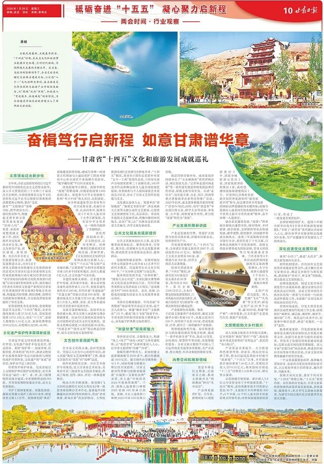征程万里风正劲,重任千钧再出发。“十四五”辉煌已铸,“十五五”蓝图待展。站在新的历史起点,甘肃文旅系统将持续巩固高质量发展基础,系统谋划、接续奋斗,奋力书写文旅融合新篇章,为谱写中国式现代化甘肃篇章作出更大贡献。