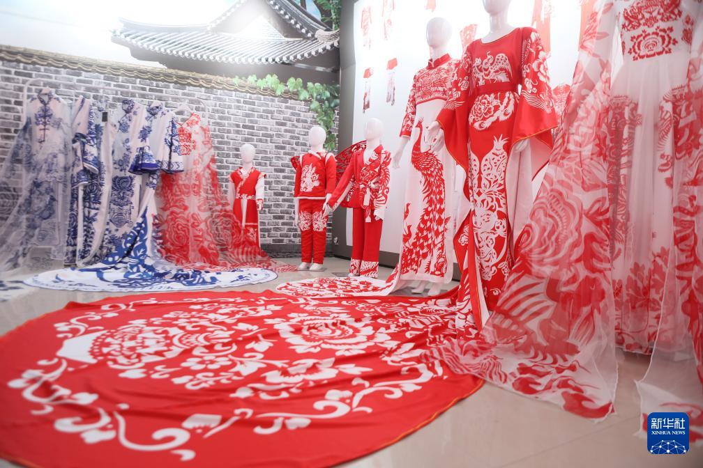 常燕和其团队创作的剪纸服饰。新华社记者 张睿 摄