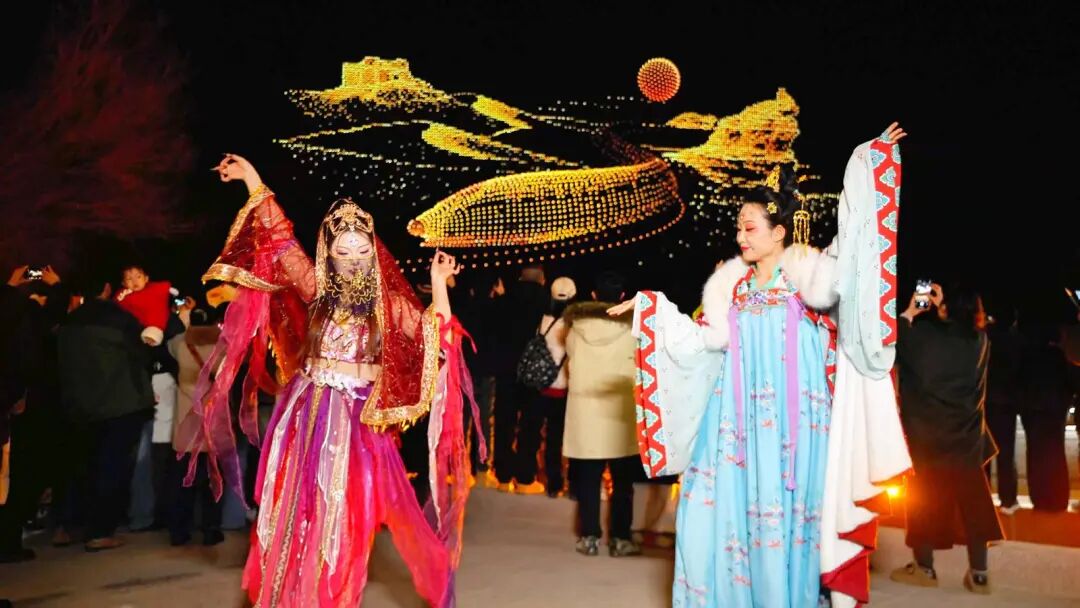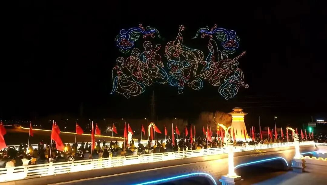 据了解,此次万机秀以“科技与文明交辉,敦煌与世界对话”为主题,由千机科技倾力打造,以万架无人机编队规模,形成新春文旅特色亮点。活动将文化传承、科技创新、节日氛围营造与文旅宣传推广有机结合,通过年轻化、国际化的呈现方式,充分展现了敦煌作为世界文化遗产的独特价值,让传统文化在新时代焕发新活力,为敦煌文旅产业高质量发展注入新动能。