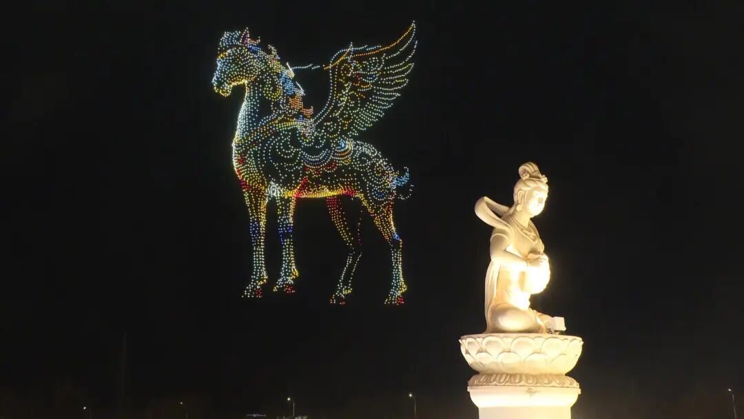 万架无人机璀璨耀敦煌 千年壁画“飞”上星空