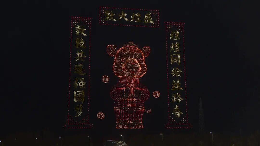 市民王祎祺说:“今天和朋友一起来到这里看无人机灯秀,非常有年味,也非常好玩,灯秀也非常好看,周围人也特别多,年味也是十分浓郁。”
