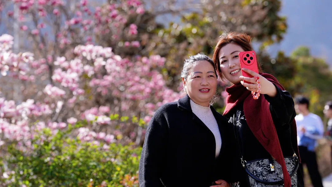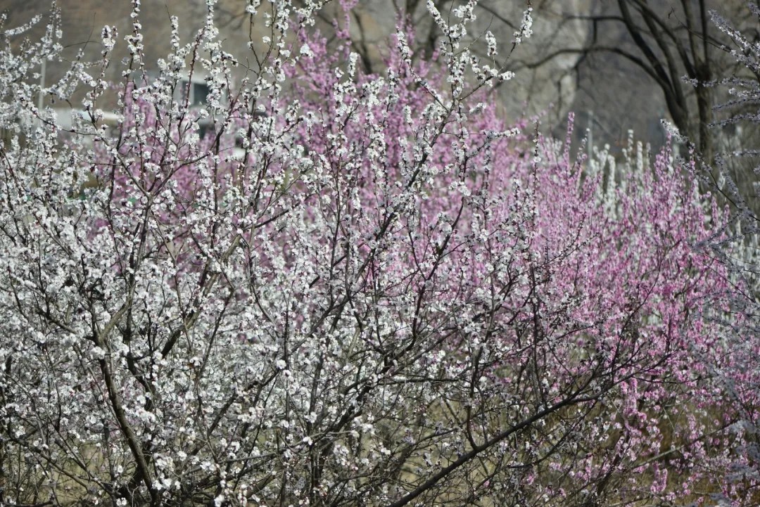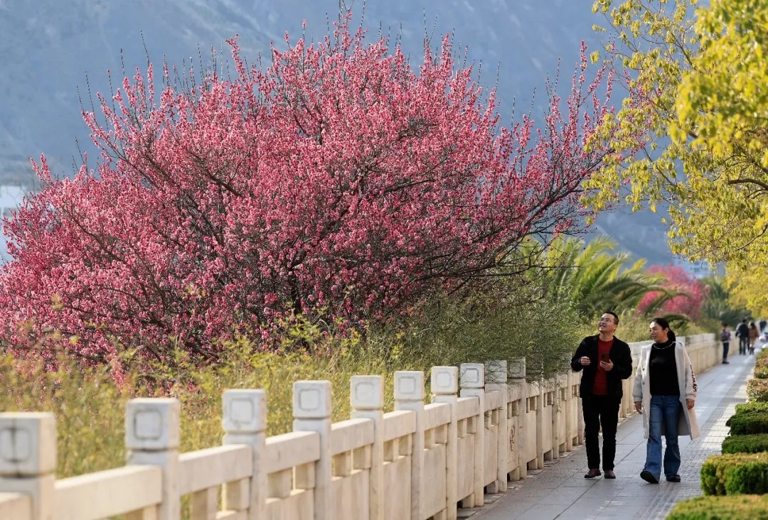 春风一拂武都区滨江湿地公园的红梅如约绽放