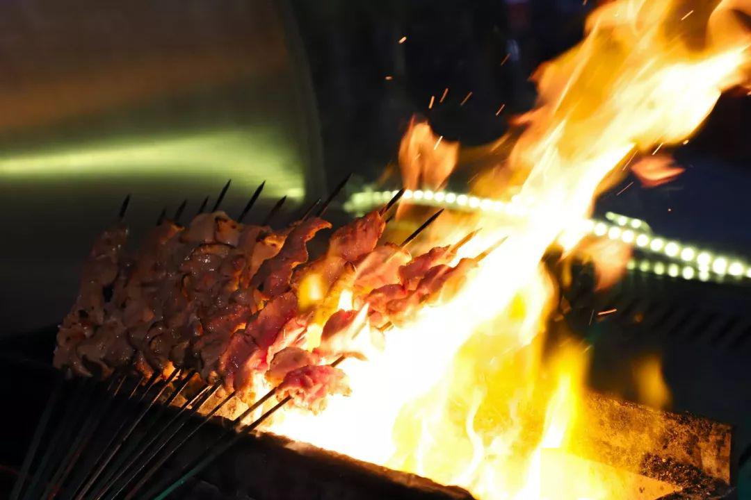 滋滋作响的烧烤架,热火朝天的小吃摊