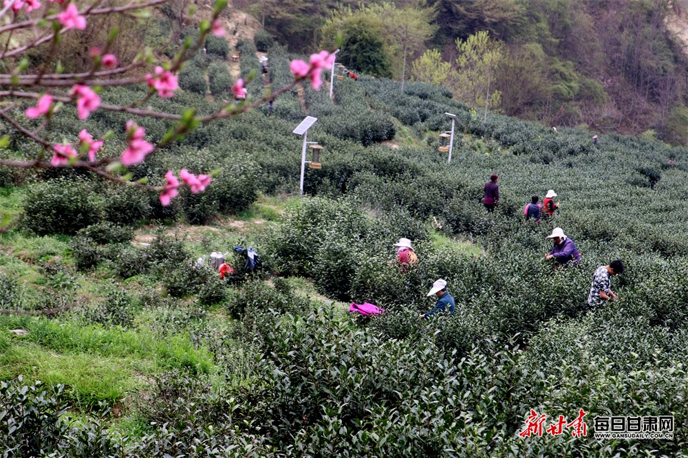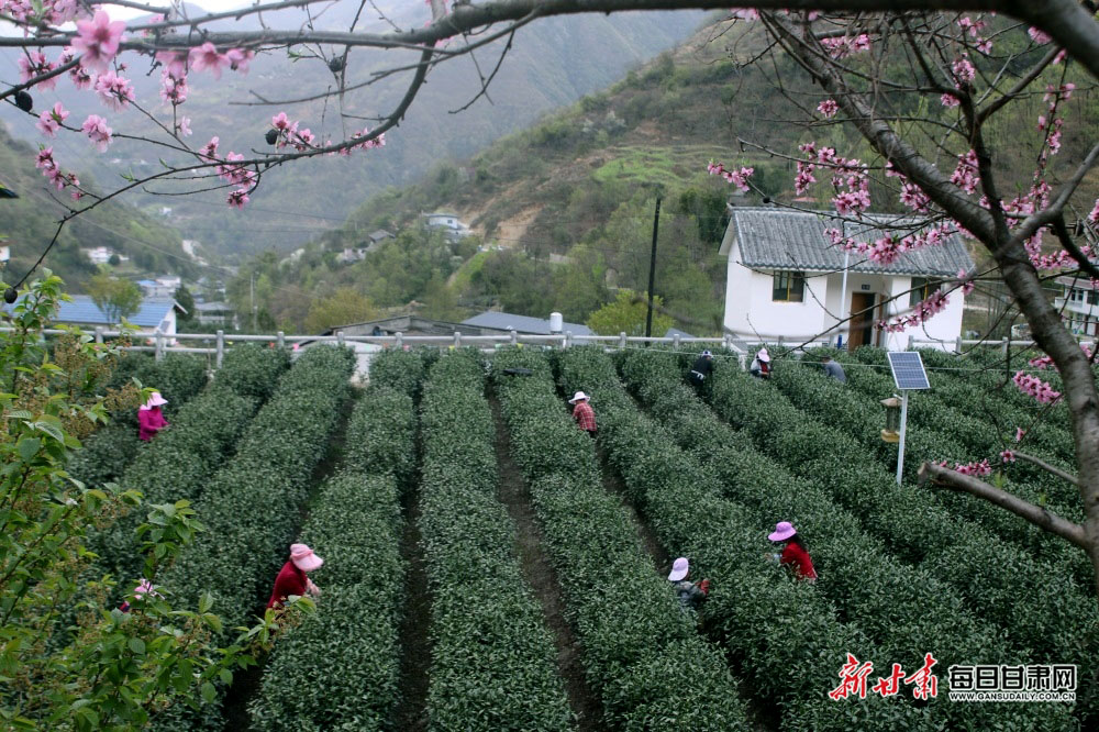 早春三月,文县范坝镇关子村茶园,茶农们手提竹篓,穿梭在茶垄间采摘茶叶。据了解,目前全县宜茶面积10.2万亩,投产面积6.5万亩,年加工茶叶59万多公斤,茶叶产业成为当地群众增收致富的支柱产业。