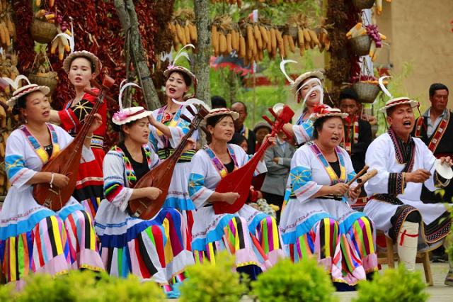 篝火歌舞表演:火圈舞又称“圆圆舞”,是白马人休闲和庆贺节日时最常见的舞蹈,用独特形式把“火”与“舞”完美地结合在一起。皎洁的月光洒在群山围绕的土坪上,月光下篝火熊熊,女子身着绚丽的彩服,男子身穿潇洒的长衫,人人头戴沙嘎、帽上飘动着长长的白鸡翎,在动人心弦的歌声中翩翩起舞。