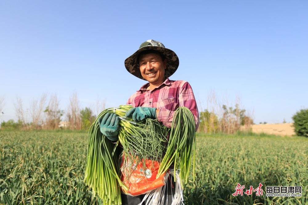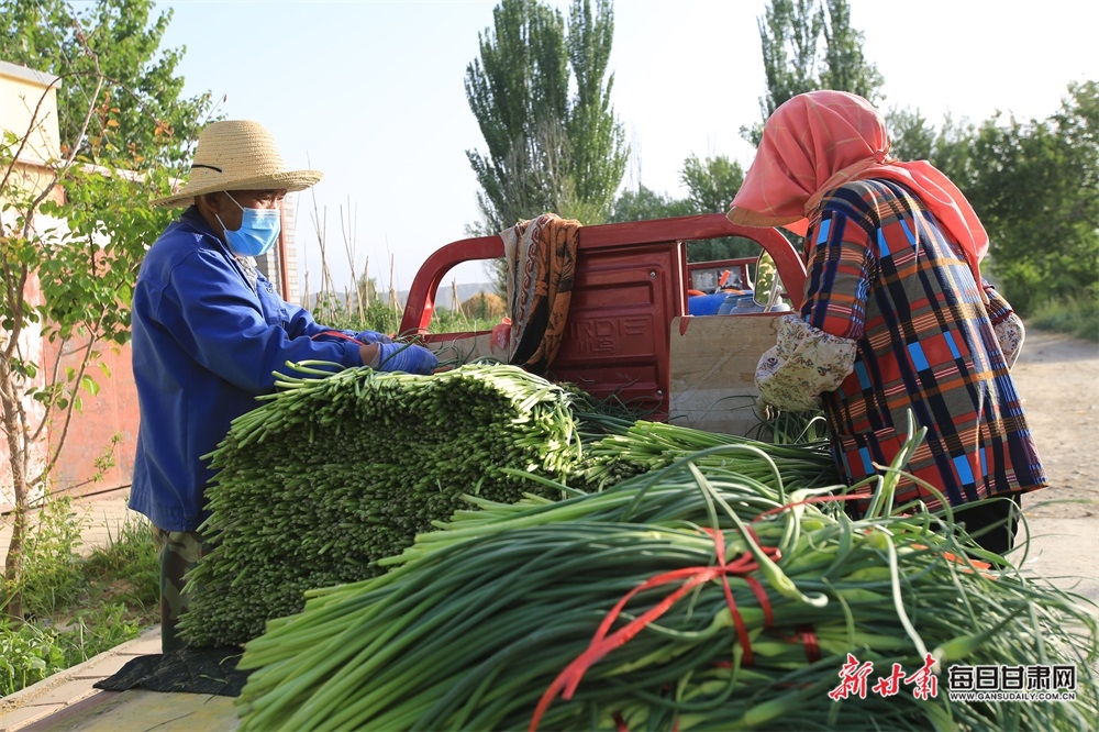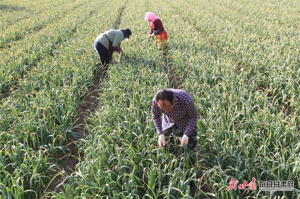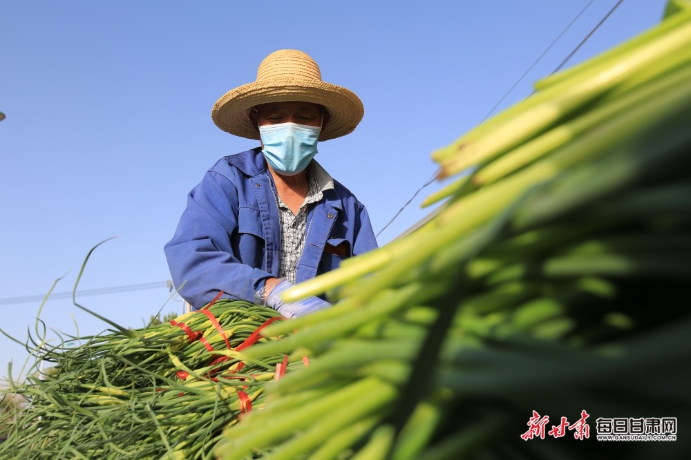 6月11日,嘉峪关市文殊镇塔湾村大蒜种植户正在骄阳下抽蒜薹。据悉,该镇每年大蒜种植面积达200余亩,年产值超过200余吨,每亩大蒜经济收入达1万余元,大蒜种植已经成为当地农民经济增收的主导产业。