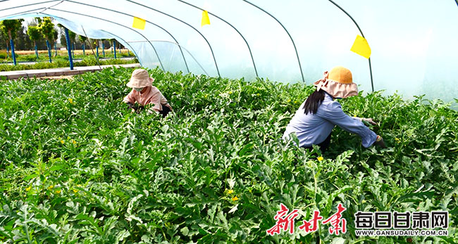 与吴霞一样,何雪也是附近村庄的村民,“在家门口打工,不仅能挣到钱,还可以照顾孩子,也学到了种植西瓜的技术,比去外面打工好多了。”