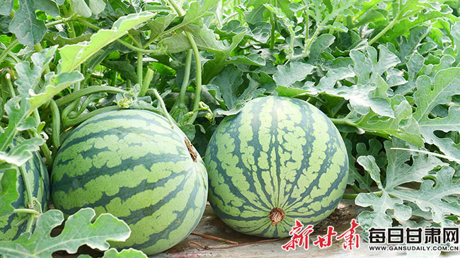 每日甘肃网讯(新甘肃·每日甘肃网通讯员 石晶 杨海翔)盛夏七月,走进山丹县现代农业科技产业园无籽西瓜种植基地,一排排钢架大拱棚错落有序地排列田间,棚内西瓜藤铺满每个角落,即将进入采摘期的无籽西瓜长势喜人。