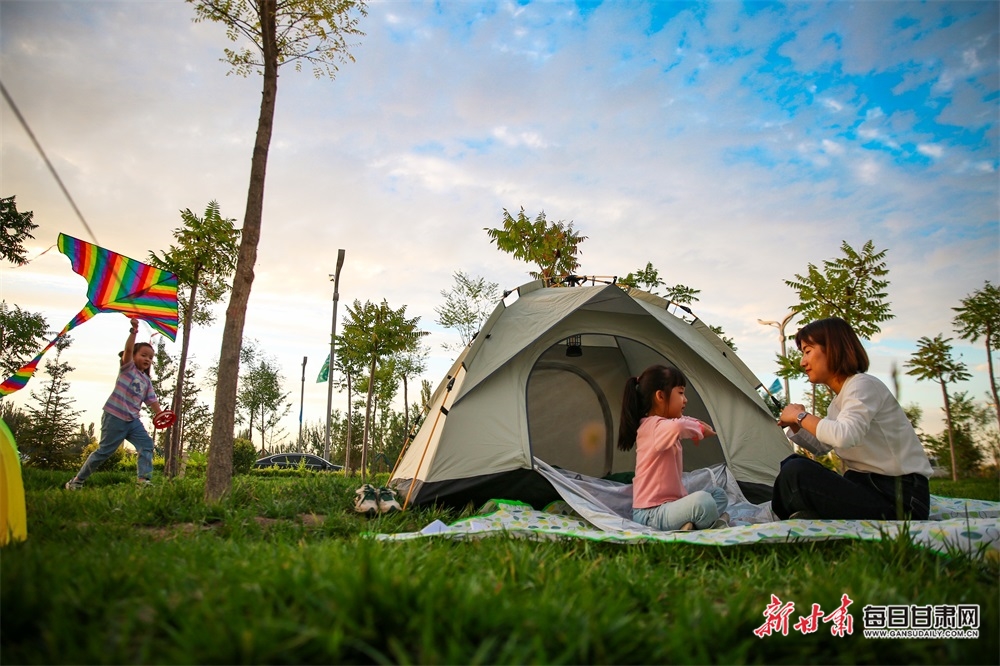肃州区:野餐露营放风筝 尽享秋日好风光