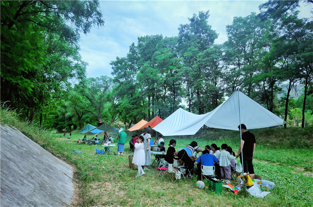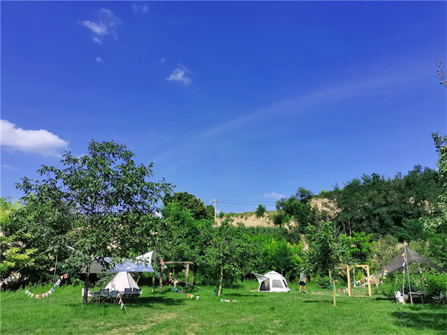 这里不仅能休闲露营、烧烤野餐,骑行赏花田、农耕研学游,亦可采摘蜜桃、李子、水果玉米等时鲜果蔬。