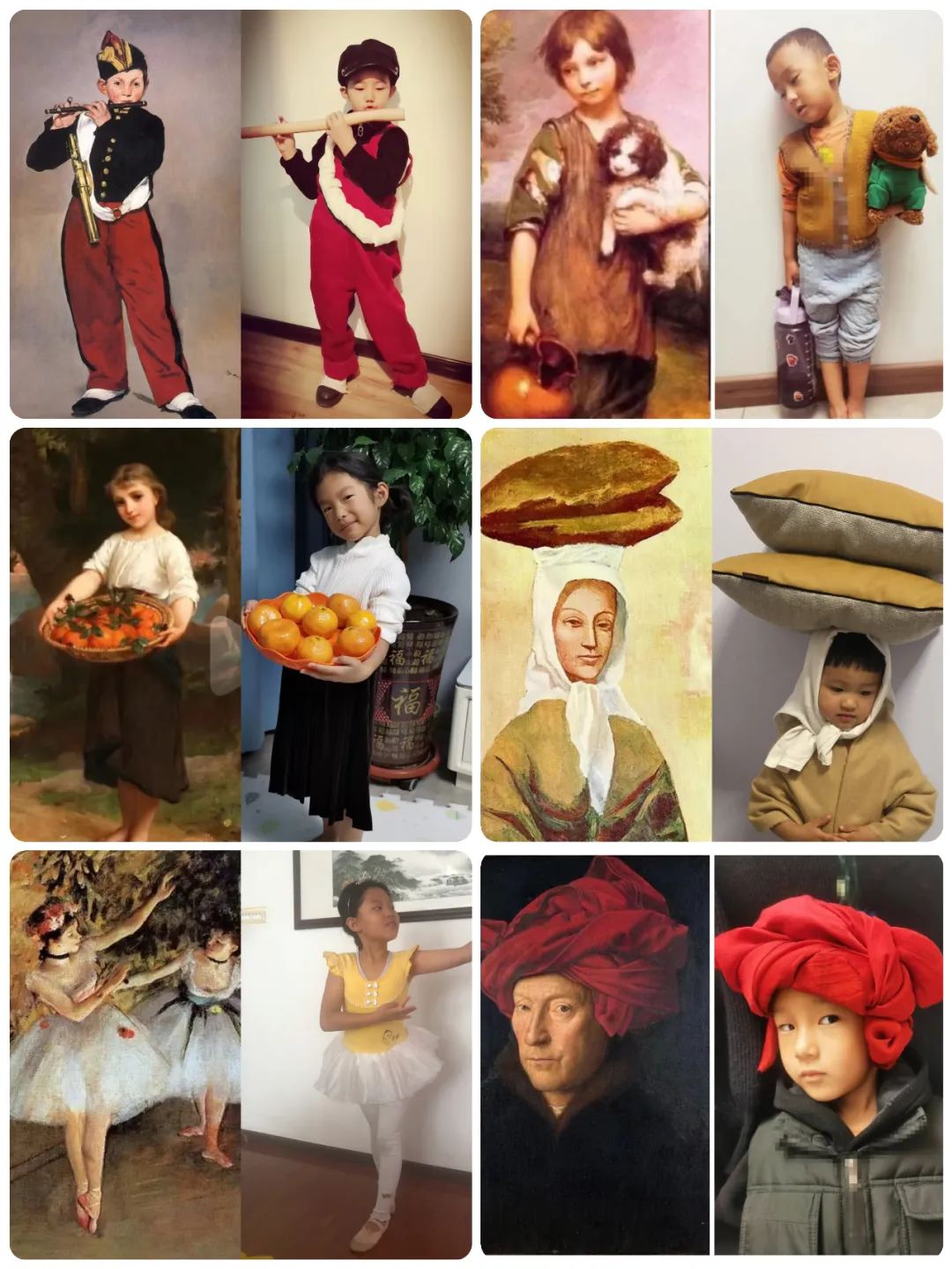假期中旬,名画cosplay有奖征集活动正式开启后,小朋友们纷纷拿起身边的道具,模仿名画,近距离接触艺术。10月3日,美术知识线上有奖竞答开启,题目包含美术基本概念、形式分类、名人名画等知识,让丰富多彩的假期多了一点挑战性。