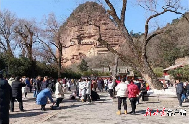 春节假日,游客走进天水麦积山景区。