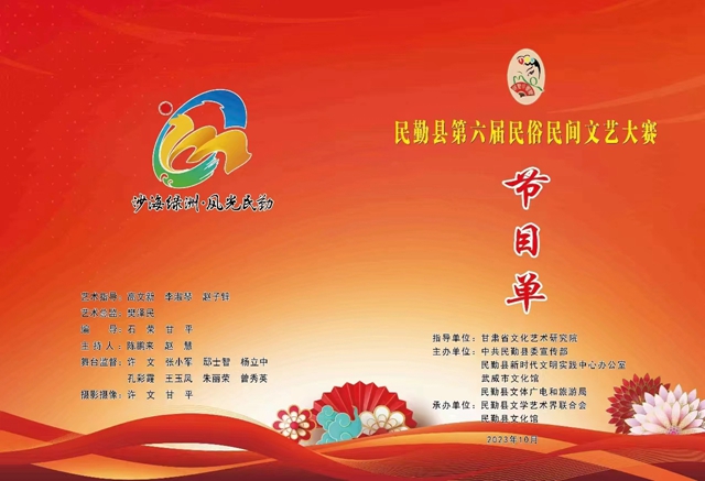 2023年11月4日,由中共民勤县委宣传部、民勤县新时代文明实践中心办公室、武威市文化馆、民勤县文体广电和旅游局主办,民勤县文学艺术界联合会、民勤县文化馆承办,省文化艺术研究院指导的民勤县第六届民俗民间文艺大赛在民勤县苏武沙羊美食街百姓大舞台成功举办。