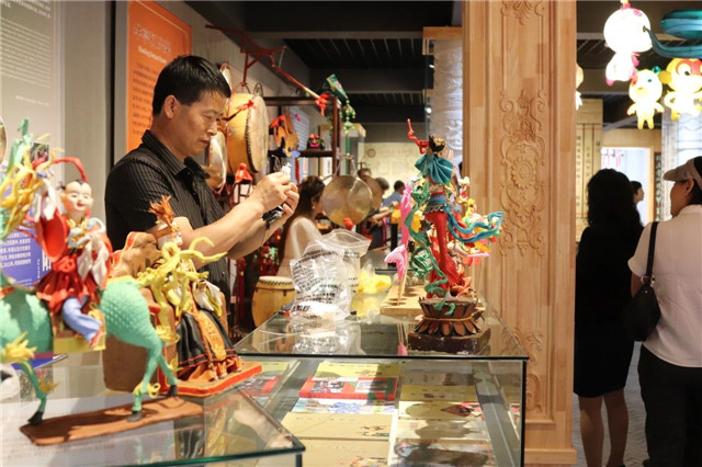 除了舞台表演,非物质文化展馆成为景区内一道亮丽的风景线。展馆内的非遗作品宛如一颗璀璨的明珠,在时光的长河中闪耀着独特的光芒。它是传承者们智慧与心血的结晶,承载着深厚的历史文化底蕴和情感记忆,向游客们展现了城市的历史变迁和人文风情。游客们在欣赏美景的同时,也能沉浸在文化的熏陶之中。平凉市文旅局还组织了文化互动体验活动,邀请游客参与传统手工艺制作、民俗游戏等,让游客亲身感受传统文化的乐趣,现场气氛热烈,游客们积极参与,欢声笑语不断。