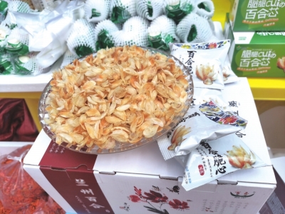 记者在现场看到,有不少当地企业就地做起了直播带货,线上线下同步销售,忙的不亦乐乎,一边忙着给现场游客出售百合干、鲜百合等产品,一边向直播间的顾客介绍兰州百合,通过“线上+线下”的销售模式,让全国各地的朋友了解和品尝到兰州百合。同时,记者还在现场解锁了百合的一种新吃法——百合酥,卖家告诉记者,百合酥作为百合的深加工产品,是这两年比较新颖的吃法,它是将百合洗净打成粉状,之后混合玫瑰、枸杞、蕨麻、红枣等西北特产,制成口味清淡、营养丰富、老少皆宜的糕点,每一个都是独立包装,好吃且方便携带,受到了不少消费者的青睐。