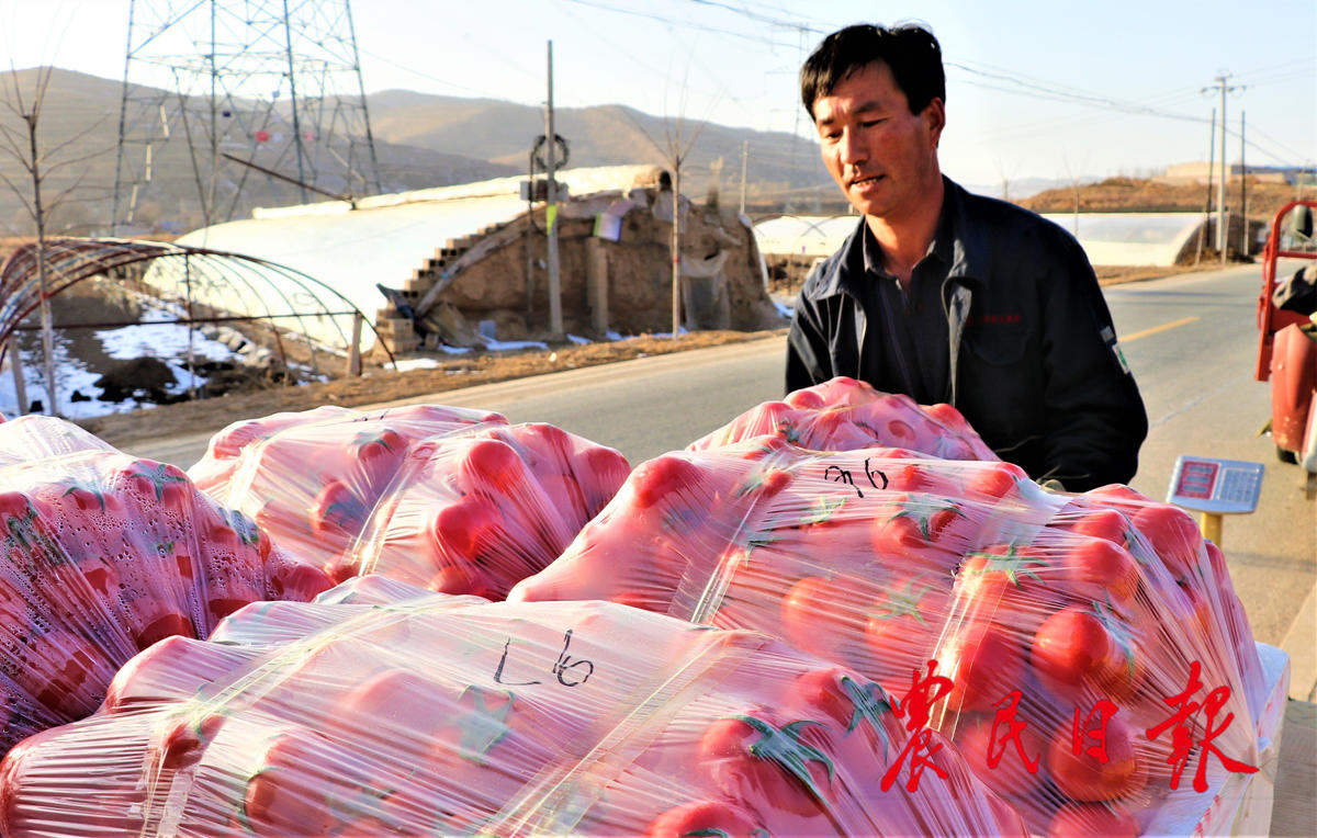 近年来,甘肃省平凉市静宁县积极推广“基地+合作社+农户”的蔬菜种植模式,大力推广大棚蔬菜科学种植,不仅提高了各类作物的成活率及品种质量,还吸纳了当地农民在家门口就业,取得了良好的经济效益和社会效益。图为1月27日,为抢抓春节前夕果蔬销售黄金季节,在该县界石铺镇李堡村蔬菜种植基地,菜农正在采摘、装运西红柿准备销售,棚里棚外一片忙碌的景象。王毅 王宝军 杨秀丽 摄