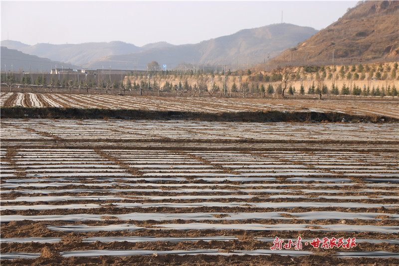 在甘沟河湾,甘沟村打造优质马铃薯示范基地600亩。为了提高马铃薯的种植质量,政府免费提供地膜,甘沟村组织人力、机械统一耕地,施肥,覆膜。截止目前已经全部完成覆膜任务,只等一场春雨来临,就可以播种。